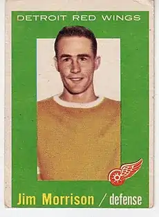 James Stewart Hunter Morrison (born October 11, 1931) is a Canadian former professional ice hockey defenceman, coach and scout. He played in the National Hockey League for the Boston Bruins, Toronto Maple Leafs, Detroit Red Wings, New York Rangers and Pittsburgh Penguins between 1951 and 1961, and again from 1969 to 1971. He also played in the minor American Hockey League during his career, which lasted from 1951 to 1973. A fast skating, offensive minded defenseman, he would score many goals and assists during his career, a rarity for a blueliner.