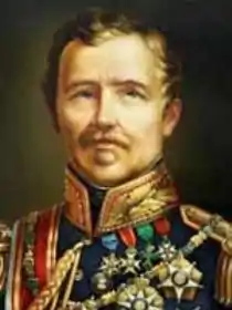 Having risen to the rank of lieutenant colonel during the civil war, he was sent to Spain in November 1834, remaining until the end of 1837 and taking part in several battles against the Carlists, who were seeking the establishment of a separate line of the House of Bourbon on the Spanish throne. He was wounded at the Battle of Arlabán in 1836. While in Spain he met his wife, D. Rosa Montufar Infante, daughter of the 3rd Marques de Selva Alegre, and they married in Spain on 30 August 1837. She was a renowned beauty who in Lisbon would become the lover of the playwright and politician of Irish descent, Almeida Garrett, and is said to have inspired his poems published as Fábulas e Folhas Caídas (Fables and Fallen Leaves). They exchanged numerous love letters, some of which were preserved on Garrett's death.[1][2][3][4]