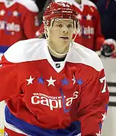 John Carlson (born January 10, 1990) is an American professional ice hockey defenseman and alternate captain for the Washington Capitals of the National Hockey League (NHL). He was drafted by the Capitals in the first round, 27th overall, in the 2008 NHL Entry Draft after playing a year in the United States Hockey League (USHL) with the Indiana Ice. Before reaching the NHL, Carlson played junior hockey in the Ontario Hockey League (OHL) with the London Knights and played professionally with the Capitals' American Hockey League (AHL) affiliate, the Hershey Bears. He also participated internationally for the United States in the 2010 World Juniors and 2014 Winter Olympics. Carlson won the Stanley Cup as a member of the Capitals in 2018, as the highest scoring defenseman during the playoffs.