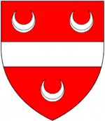 In 1376, he married Margaret Holway, daughter and heiress of Robert Holway,[22]) of Holway in the parish of Northlew[23] in Devon. The arms of "Holway of Holway" are Gules, a fesse between three crescents argent[24] and appear quartered by Cary on the monument in Clovelly Church of Robert Cary (died 1587). Their children included three sons: