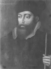 John Dudley was an imposing figure with a strong temperament who could also charm people with his courtesy and a graceful presence.[236] He was a family man, an understanding father and husband who was passionately loved by his wife.[237] Frequent phases of illness, partly due to a stomach ailment, occasioned long absences from court but did not reduce his high output of paperwork, and may have had an element of hypochondria in them.[238] The English diplomat Richard Morrison wrote of his onetime superior: "This Earl had such a head that he seldom went about anything but he had three or four purposes beforehand."[239] A French eyewitness of 1553 described him as "an intelligent man who could explain his ideas and who displayed an impressive dignity. Others, who did not know him, would have considered him worthy of a kingdom."[41]