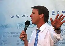 Edwards speaking at a "Small Change for Big Change" fundraiser in Los Angeles, California in August, 2007.