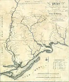 When trade in deer hides and ammunition declined due to the War of 1812 and the Creek War, Forbes & Company sought repayment of losses through lawsuits against British officers and negotiations with Indian tribes. Creek and Seminole Indians ceded large tracts of land to the firm as payments for their debts, and the Spanish governor ratified the title. What became known as the Forbes Purchase equaled over 1.4 million acres acquired by Forbes and Company during the period from 1804 to 1812, making it the largest land grant in Spanish Florida.[2] In 1817, the Forbes Purchase was sold to two merchants named Carnochan and Mitchel, who later formed the Apalachicola Land Company. In territorial Florida (1821–1845), the title to land near the Apalachicola River was not settled until 1835, and lawsuits related to land claims in the Florida Panhandle by heirs of Thomas Forbes were contested as late as 1887.[3]