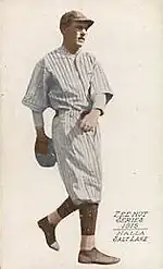 Halla was then purchased by the American Association's Louisville Colonels and stayed with them for the next three seasons.[2][6] In 1908, Halla had a win-loss record of 23-16 while pitching 336 innings, and in 1909, he went 17–12.[2] However, he then went 10–23 in 1910 to lead the league in losses.[7] He went to the Pacific Coast League for two seasons after that and posted two more losing records.[2]