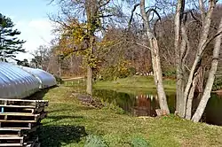 Allandale Farm is located astride the border between Chestnut Hill and the Jamaica Plain neighborhood on Boston's southwest side. It covers about 105 acres (42 ha), bounded on the west by Newton Street and the south and east by Allandale Road. It is bounded on the north by the Brandegee Estate, of which it was once a part.[2] The farmstand that serves the public is located on Allandale Road, along with a cluster of greenhouses.