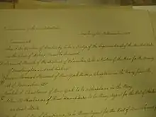 Crittenden began a college preparatory curriculum at Pisgah Academy in Woodford County.[5] He was then sent to a boarding school in Jessamine County.[5] Among his classmates were Thomas Alexander Marshall and Francis P. Blair.[3] Crittenden became especially close friends with Blair, and later political differences did little to diminish their friendship.[6] After a year at boarding school, Crittenden moved to the Lexington, Kentucky, home of Judge George M. Bibb to study law.[5] He began more advanced studies at Washington College (now Washington and Lee University) in Lexington, Virginia.[7] During his brief tenure there, he studied mathematics and belles-lettres and became friends with Hugh Lawson White.[7] Dissatisfied with the curriculum at Washington College, Crittendon moved to Williamsburg and transferred to the College of William and Mary.[7] He studied law under St. George Tucker and became acquainted with future president John Tyler.[5][8]