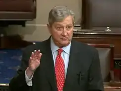 John Neely Kennedy (born November 21, 1951) is an American lawyer and politician who has served as the junior United States senator from Louisiana since 2017. A Republican, he served as the Louisiana State Treasurer from 2000 to 2017, as Secretary of the Louisiana Department of Revenue from 1996 to 1999,[1] and as special counsel and then cabinet member to Governor Buddy Roemer from 1988 to 1992.[1]