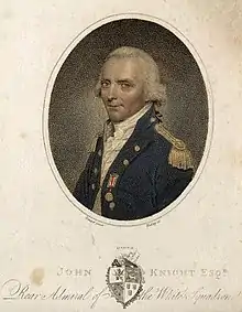 Admiral Sir John Knight, KCB (bap. 21 February 1747 – 16 June 1831) was a senior British Royal Navy officer during the late eighteenth and nineteenth centuries most noted for his activities as a post captain during the American and French Revolutionary Wars. Serving with the Caribbean Fleet during the American war, Knight fought several significant battles and was commended for his service and made tutor of the young Prince William. During the French wars he served with the North Sea fleet under Admiral Adam Duncan and was engaged at the Battle of Camperdown against the Dutch. During the Napoleonic Wars that followed he held a senior administrative role at Gibraltar and retired in 1815 to his home and eight children. Although Knight was respected professionally, he was not popular with his men and fellow officers and was criticised for his ability to maintain discipline and for his close relationship with his family which some suggested had a negative impact on his performance as an officer.