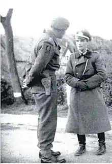 Lt Col HJ Mogg DSO with ADC to General Wolz, Commander of Hamburg Garrison who was escorted to deliver the surrender of German Forces in North West Germany, 3rd May 1945.