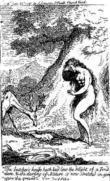 John Oswald, like his contemporary Rousseau, argued that modern society was in conflict with man's nature. Oswald argued in The Cry of Nature or an Appeal to Mercy and Justice on Behalf of the Persecuted Animals, that man is naturally equipped with feelings of mercy and compassion.[5] If each man had to personally experience the death of the animals he ate, so argued Oswald, a vegetarian diet would be far more common. The division of labour, however, allows modern man to eat flesh without experiencing the prompting of man's natural sensitivities, while the brutalization of modern man made him inured to these sensitivities.[5] Although Oswald gave compassion a central place in his philosophy, and was a vegetarian, he was not a pacifist, as evidenced by the fact that he died fighting in the French Revolution.[5]