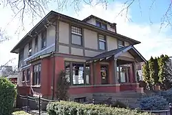The John Parker House in Boise, Idaho, is a 2-story bungalow designed by Tourtellotte & Hummel and constructed in 1911. The house features a sandstone foundation and brick veneer surrounding the first floor, with a half-timber second floor infilled with stucco. An outset front porch is a prominent feature, supporting a gabled roof by two square posts. The hip roof above the second floor includes a single dormer with battered, shingled sides. The house was listed on the National Register of Historic Places in 1982.[2]