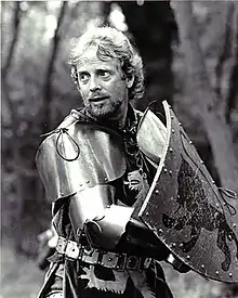 In 1965, actor Robert Hardy (who had a deep interest in archery) visited Lillywhites, and Waller sold him a longbow and arrows. Through that and other contacts made while working there, Waller discovered an opportunity suited to his interests and skills - fight arranger, action coordinator and historical adviser for stage and screen. His first engagement was in 1965 for a production of the pantomime Babes in the Wood at the London Palladium. During his career, he worked on over 60 plays and 15 operas in London and the English regions, about 50 television dramas, soap operas and documentaries, and many television commercials (including a 28-year association with Strongbow cider and its "thudding arrows" motif). He worked on more than 10 feature films; including Anne of a Thousand Days (1969), Mary, Queen of Scots (1971), Monty Python and the Holy Grail (1975),[lower-alpha 2] and Legend (1985).[2] He taught actors at, among other institutions, the London Academy of Music and Dramatic Art and the Guildhall School of Music and Drama.[3] His guiding principle was, "reality first, theatricality second".[2] He strove for historical accuracy; before him, staged sword fighting had been largely based around modern sport fencing techniques.[3] In fantasy settings his question was, "If it could have happened, how would it have happened?"[2]