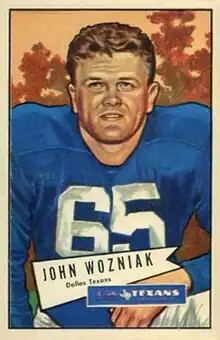 ![]() Wozniak on a 1952 Bowman football card | |