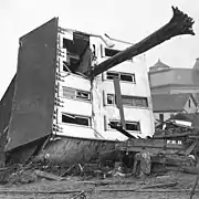 Just sixteen when the flood happened, survivor Victor Heiser gave his recollection of the event years later during a recording of his oral history. He remembered people living in the area near the dam often saying beforehand, "That dam will give way, but it won’t ever happen to us," and also recalled that the flood, when it hit, was like a "huge wall" coming down the street.[25] The longest living survivor of the flood, Frank Shomo, died March 20, 1997, at the age of one hundred and eight.[26]