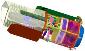 The SNAP would have used an optical setup called the three-mirror anastigmat. This consists of a main mirror with a diameter of 2 meters to take in light. It reflects this light to a second mirror. Then this light is transferred to two additional smaller mirrors which direct the light to the spacecraft's instruments. It will also contain 72 different cameras. 36 of them are able to detect visible light and the other 36 detect infrared light. Its cameras combined produces the equivalence of a 600 megapixel camera. The resolution of the camera is about 0.2 arcseconds in the visible spectrum and 0.3 arcseconds in the infrared spectrum. The SNAP would also have a spectrograph attached to it. The purpose of it is to detect what type of supernova SNAP is observing, determine the redshift, detect changes between different supernovas, and store supernova spectra for future reference.[6]