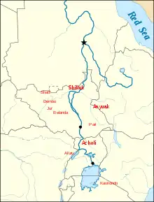 For various reasons, slow and multi-generational migrations of Nilotic Luo Peoples occurred from South Sudan into Uganda and western Kenya from at least 1000 AD continuing up until the early 20th century.[27] Some authors note that the early phases of this expansion coincide with the collapse of the Christian Nubian kingdoms of Makuria and Alodia, the penetration of Arabs into central Sudan as well as Nilotic adoption of Iron Age technology.[28][29] The northern most group of Luo peoples - The Shilluk - advanced north along the White Nile in the 16th century, conquering territory as far as modern day Khartoum.[30] They established the Shilluk Kingdom.[31][32] In the 15th century, Luo peoples moved into the Bunyoro-Kitara Kingdom and established the Babiito dynasty in Uganda. This group assimilated into Bantu culture. [31]