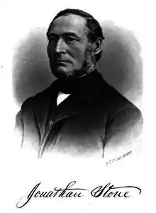 - ↑ The New York Times (November 27, 1897), "DEATH LIST OF A DAY. Obituary Notes. Jonathan Stone", The New York Times, New York, NY, p. 7
