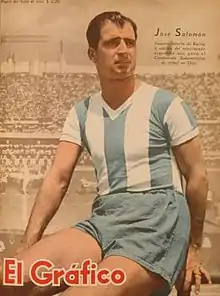 José Salomón (9 July 1916 in La Plata – 22 January 1990) was an Argentine football defender who played club football for Talleres de Remedios de Escalada and Racing Club de Avellaneda and captained the Argentina national football team.[1]