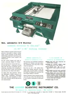Gerber also introduced a line of data reduction products for scanning and digitizing, including the Gerber Analogue Data Reduction System and the Gerber Digital Data Reduction System to read x,y coordinate positions and convert the information into machine-readable punched tape. Gerber also introduced the first digital plotter, initially used for precisely plotting enemy battleship positions on maps, the first digital motion-controlled machine to create graphics. NASA's Johnson Space Center later relied on Gerber's plotters for communications analysis and graphical data display for the first lunar landing, in 1969.[8]