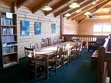 In 2010 several citizens of Joseph, Oregon came together to discuss the idea of a community arts center. In 2012 a generous patron purchased a spacious log building on the corner of Alder and Main.[2] The Center has occupied this space ever since, using it to host monthly exhibits, talks, and film showings, and renting out the remainder as studio or class space. From 2012 to early 2015 the Maxville Heritage Interpretive Center rented exhibit space upstairs. Also upstairs, and linked with the Center, is the Alvin M. and Betty Josephy Library of Western History and Culture.