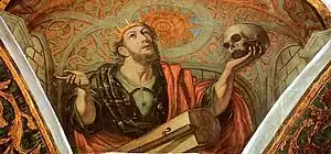Juan Galván (or Galbán) Jiménez (19 November 1596 – 1658),[1] a Spanish painter, was born at Luesia, in the kingdom of Aragon. According to Palomino, he went to Rome for improvement, where he remained some time, and on his return to Spain in 1624 resided chiefly at Zaragoza, where he was named painter by the Corporation, and executed various pictures for the cathedral and Carmelite convent. For the cathedral of Zaragoza he executed pictures of the Nativity, Santa Justa, and Santa Rufina, as well as other large works, which Cean Bermudez praises for their colouring. He painted the cupola of Santa Justa y Rufina, and a picture of the Trinity for the Barefooted Carmelites; but his principal work was the Birth of the Virgin. He died at Zaragoza.
