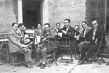 Information on Palomino's political preferences of the very early 1930s is inconclusive. In October 1930 he was active in Partido Católico Nacional, an Integrist organisation created after the fall of Primo; Palomino entered the local Junta Directiva and became its secretary, apparently on excellent terms with the party leader in Western Andalusia, Manuel Fal Conde.[34] However, in the local elections of 1931 he ran as "gremialista" against the republican-socialist coalition[35] and the following year he was still counted within "minoría gremial".[36] During the first Republican electoral campaign of June 1931 he co-financed the Jerez branch of Acción Nacional, a broad conservative alliance “dominated by an energetic group of middle-class Integrists”.[37] In the summer he co-signed a manifesto, which declared setting up of a “partido político católico” within the general “tradicionalismo-integrista” current.[38] In August he co-founded a local Jerez right-wing alliance Unión de Derechas Independientes and entered its ruling junta;[39] in early 1932 as member of Juventud of Derechas Independientes he invited José Antonio Primo de Rivera to Jerez and entertained him during a banquet.[40] Also in early 1932 he took part in a joint rightist conference in Jerez, attended by one of the Carlist national leaders Conde de Rodezno.[41]