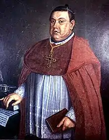 Juan José de Aycinena y Piñol (Guatemala City, 29 August 1792 – Guatemala City, 17 February 1865) was an ecclesiastical and intellectual conservative in Central America. He was President of the Pontifical University of San Carlos Borromeo from 1825 to 1829 and then of the Universidad Nacional from 1840 to 1865. He was a thinker criticized by liberal historians for his strong relationship with the conservative government of General Rafael Carrera and for eliminating the possibility of getting the Central American Union which the Liberals wanted.[1][2] His participation in the government has been assessed more objectively in research conducted between 1980 and 2010.[3][4] He was heir in 1814 to the noble title of III Marquess of Aycinena, and bishop in partibus of Trajanopolis from 1859. He had a taste for law, oratorical talent and wrote over twenty works.[5][6]