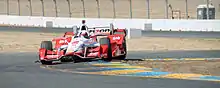 For the 2016 IndyCar Series, he raced for Penske.[189] Montoya's average qualifying performance dropped from the previous season,[190] however he occasionally raced quicker during a race after a poor qualifying.[191] He started third and led 44 of the 110 laps of the Firestone Grand Prix of St. Petersburg before passing teammate Simon Pagenaud to win.[192] Montoya started third and led 56 laps in the following Desert Diamond West Valley Phoenix Grand Prix in Phoenix when a flat tyre forced an early pit stop and left him to ninth place, moving Pagenaud into the championship lead.[193] He took three more top-tens before an early racing collision in the Indianapolis 500 left him in 33rd, putting him in a points deficit. Montoya end the season with five top-tens, and he placed third at Sonoma for eighth in the drivers' standings with 433 points.[189][191]