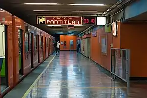 Juanacatlán is a metro station on the Mexico City Metro. It is located in Mexico City's Miguel Hidalgo borough in the San Miguel Chapultepec neighborhood, and lies on Line 1 of the Metro.[2][3] In 2019 the station had an average ridership of 11,669 passengers per day, making it the least used station in Line 1.[4] Since 9 November 2023, the station has remained closed for modernization work on the tunnel and the line's technical equipment.[5]
