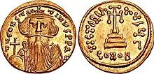 Following the fall of the Sasanian Empire, the local rulers in the Southern Caucasus had to choose whether to cooperate with the nascent, but possibly momentary Rashidun Caliphate, or the Byzantine Empire, which had survived the Muslim conquests. Juansher's father seemingly became the leader of Albania once more, due to his seniority. He took the safe route by acknowledging the suzerainty of the caliph, but also instructed Juansher to establish contact with the Byzantine emperor and offer his services. Juansher sent a letter to the Byzantine emperor Constans II (r. 641–668), in which he offered to become his vassal. The latter accepted his offer, bestowing Juansher with the high-ranking title of protopatrikios. Juansher was also given the authority to assign a number of Roman titles to his subjects, and a piece of the True Cross.[19] Juansher's submission to the Byzantines most likely took place before Constans II's campaign to Armenia in the autumn of 653, but was first really implemented during the civil war in the caliphate between 656–661, when Constans II managed to exert his influence over all of the Southern Caucasus.[23] The civil war ended with the dissolution of the Rashidun Caliphate, now replaced by the Umayyad Caliphate.[24]