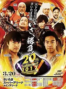 Judgement 2017: DDT 20th Anniversary (Judgement2017〜DDT旗揚げ20周年記念大会〜, Judgement 2017: hataage 20 shūnen kinen taikai) was a professional wrestling event promoted by DDT Pro-Wrestling (DDT). It took place on March 20, 2017, in Saitama, Japan, at the Saitama Super Arena.[1][2] It was the twenty-first event under the Judgement name and the first Judgement event held outside of Tokyo. The event aired domestically on Fighting TV Samurai.[3]