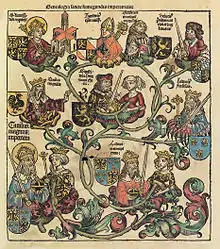 Though the Welfs were noble, they were not part of the '"Imperial Aristocracy'" (Reichsaristokratie) that dominated high office throughout the Carolingian empire. The Welf clan's leaders, having lost influence in their home region of Alemannia (present-day southwestern Germany and northern Switzerland) eventually rose to power through cementing familial ties with the Carolingian Imperial Aristocracy in the 770s.[1] Nonetheless, they remained a part of the upper aristocracy (Hochadel) of their region, given the numerous appearances of the noble titles of ducal (duke) and comital (counts) in primary sources. This noble status made Judith a suitable marriage prospect for the imperial family,[1] and the Welf clan as a whole saw its prestige and power increase after Judith's marriage to the Carolingian emperor Louis the Pious in 819.