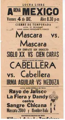 5Cien Caras defeated Siglo XXBest two-out-of-three falls Lucha de Apuestas, mask vs. mask match[7]