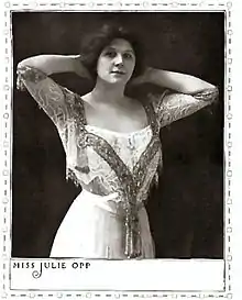 - 1 2 3 "Julie Opp Dies in New York Hospital". Boston Daily Globe. April 9, 1921. p. 14. Retrieved January 3, 2020 – via Newspapers.com.