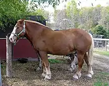 Junctional epidermolysis bullosa (JEB) is an inherited disorder that is also known as red foot disease or hairless foal syndrome.[1] JEB is the result of a genetic mutation that inhibits protein production that is essential for skin adhesion.[2] Therefore, tissues, such as skin and mouth epithelia, are affected.[3] Blisters form over the entire body causing pain and discomfort,[1] and open sores leave newborn foals highly susceptible to secondary infection.[2] The condition can be categorized into two types of mutations: JEB1 and JEB2. JEB1 is found in Belgian Draft horses, as well as other related Draft breeds. In contrast, JEB2 is found in American Saddlebred horses.[1]