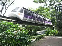A monorail system was first mooted in 1988 when the Jurong Bird Park still utilised diesel trams to ferry visitors around the park.[1][2] On 21 June 1990, a sign promoting a monorail development with two stations and four trains was sighted at the park. The proposed monorail would be Singapore's second monorail after the Sentosa Monorail which commenced operations in 1982.[3] In September 1990, the executive director of the park, S.Thiruchelvam, said that a monorail would run silently and not emit pollution as it would be powered by electricity. It was also intended to facilitate closer contact between visitors and the birds.[2]