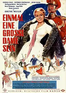 Just Once a Great Lady (German: Einmal eine große Dame sein) is a 1957 West German comedy film directed by Erik Ode and starring Gudula Blau, Grethe Weiser and Dietmar Schönherr.[1] It has the title of a 1934 film but it is a remake of The Countess of Monte Cristo (1932).