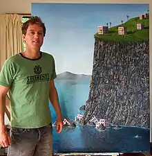 Justin Summerton is a surrealist painter who depicts a dreamlike world in his work, often presenting New Zealand as a primeval landscape.[4] In his work, Summerton reveals a fascination with New Zealand natural elements, such as the sea, volcanic cones, mountains and cloud formations, which constitute the basis of all his work. His latest paintings have been described as inhabiting "a strange milieu halfway between representational landscape and surrealist dreamscape."[5] The artist makes the landscapes his own, by rearranging and/or adapting them to his vision, obeying to symbolic or allegorical purposes.