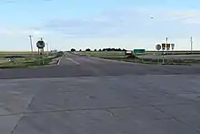 K-27 is an approximately 226-mile-long (364 km) north–south state highway that parallels Kansas' western border with Colorado. It is the westernmost north–south state highway in the state. It begins at U.S. Route 56 (US-56) in Elkhart near the Oklahoma state line and travels through the seven counties that border Colorado until reaching its northern terminus north of St. Francis, where it ends at the Nebraska state line (effectively becoming like-numbered Nebraska Highway 27). Along the way, it intersects several major highways, including US-160 in Johnson City, US-50 and US-400 in Syracuse, US-40 in Sharon Springs, Interstate 70 (I-70) and US-24 in Goodland, and US-36 in Wheeler. The section from US-40 north to Nebraska, is designated as the Land and Sky Scenic Byway. K-27 changes time zones twice, during its trek through Kansas, the only highway in the state to do so.