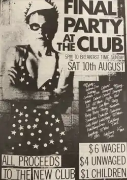 The KG Club was generally volunteer-operated and hosted a range of community events and workshops. These included training classes for women, unofficial weddings, film and music events, as well as discussions on important matters such as racism, parenting and issues faced by Māori and Pacific people.[3][4] Despite being a supportive founding member, Hetet expressed disappointment in the strict 'women-only' policy adopted at times by the KG Club, and its subsequent exclusion of many of her queer friends who were not women.[2]