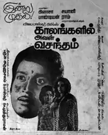 Kaalangalil Aval Vasantham (transl. Among seasons, she is spring) is a 1976 Indian Tamil-language film directed by S. P. Muthuraman and produced by S. Baskar. The screenplay was written by Panchu Arunachalam from a story by C. N. Muthu. The film stars R. Muthuraman, Chandrakala and Srividya.[1] It was released on 13 April 1976.[2] The film was remade in Kannada as Hrudaya Pallavi (1987).