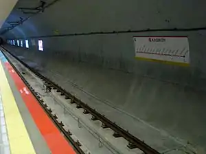Kadıköy is the western terminal station on the M4 line of the Istanbul Metro.[1] Located beneath Haydarpaşa Rıhtım Caddesi (Street) it is serviced by the M4 between 6:00 and 0:04.[2] The station has two tracks serving an island platform. Kadıköy opened on 17 August 2012 along with fifteen other stations on the M4 line. The Turkish Prime Minister Recep Tayyip Erdoğan along with the Mayor of Istanbul, Kadir Topbaş and other members of government inaugurated the line from Kadıköy and boarded a train to Kartal.