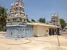Temple of the Deity, Marudha Kaliamman. A small temple in Dravidian architecture style.