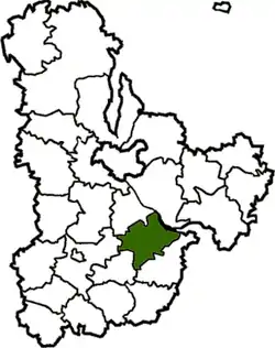 Kaharlyk Raion (Ukrainian: Кагарлицький район) was a raion (district) in Kyiv Oblast of Ukraine. Its administrative center was the city of Kaharlyk. The raion was abolished on 18 July 2020 as part of the administrative reform of Ukraine, which reduced the number of raions in Kyiv Oblast to seven. The area of Kaharlyk Raion was merged into Obukhiv Raion.[1][2] The last estimate of the raion population was 32,346 (2020 est.)[3].