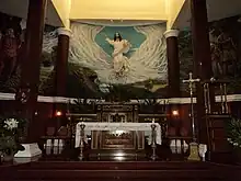 The shrine has a healing chapel where masses are conducted.[8] The chapel has a capacity of 1,000 people but has encountered instances where overcrowding occurs.[9] A building dubbed as the "healing dome", subsequently named as the Healing Church of the Risen Christ, was completed in November 2022.[10][11] Near the church and chapel is a hill containing scenes depicting the way of the Cross and a statue depicting the ascension of Jesus.[5][12][13] The shrine also has an outdoor museum containing replicas of Biblical events and characters.[5]