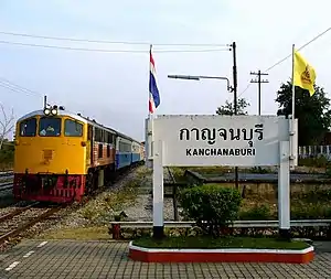 Kanchanaburi railway station is a main railway station of province of Kanchanaburi located in Ban Tai Subdistrict, Kanchanaburi City, Thailand. It is a class 1 railway station located 117.046 km (72.7 mi) from Thon Buri railway station, and 77 km (47.8 mi) away from the Nam Tok railway station, the terminal station.[1] The line opened in 1942 by the Imperial Japanese Army, during the Second World War. After the war, the State Railway of Thailand bought the line from the Allied powers, and the station reopened in June 24, 1949, from Nong Pladuk Junction.