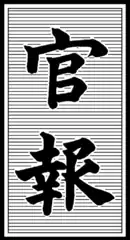 Japanese people historically relied on the kōsatsu, a wooden plaque placed at shukuba and other important places, to learn of proclamations made by either the shogun or the local daimyo.[3] As the literacy rate improved and the modern nation emerged under the Meiji government, the kōsatsu was abolished in 1873 and eventually replaced by the Kanpō, the Japanese government gazette, which is now available on the Internet.