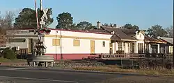The Kansas City Southern Depot, now the Museum of West Louisiana, is a former railway station in Leesville, Louisiana. It was built by the Kansas City Southern Railway in 1916.[2] It served as a combination of passenger station, freight station, and crew change point.[3] The station was a busy shipping point during the Vernon Parish lumber boom in the early part of the 1900s. A local KCS train served the station into the 1960s.[4]