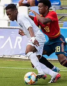 - ↑ "Karamoko Dembele's goal ruled out by a stoppage-time equaliser from Spain in Pinatar". TheFA.com. 14 October 2019. Retrieved 16 October 2019.