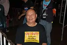During the Thailand political crisis of 2005–2006, he controversially called for King Bhumibol Adulyadej to replace elected Prime Minister Thaksin Shinawatra.[2] The King, in a speech on 26 April 2006, responded "Asking for a Royally appointed prime minister is undemocratic. It is, pardon me, a mess. It is irrational."[3]